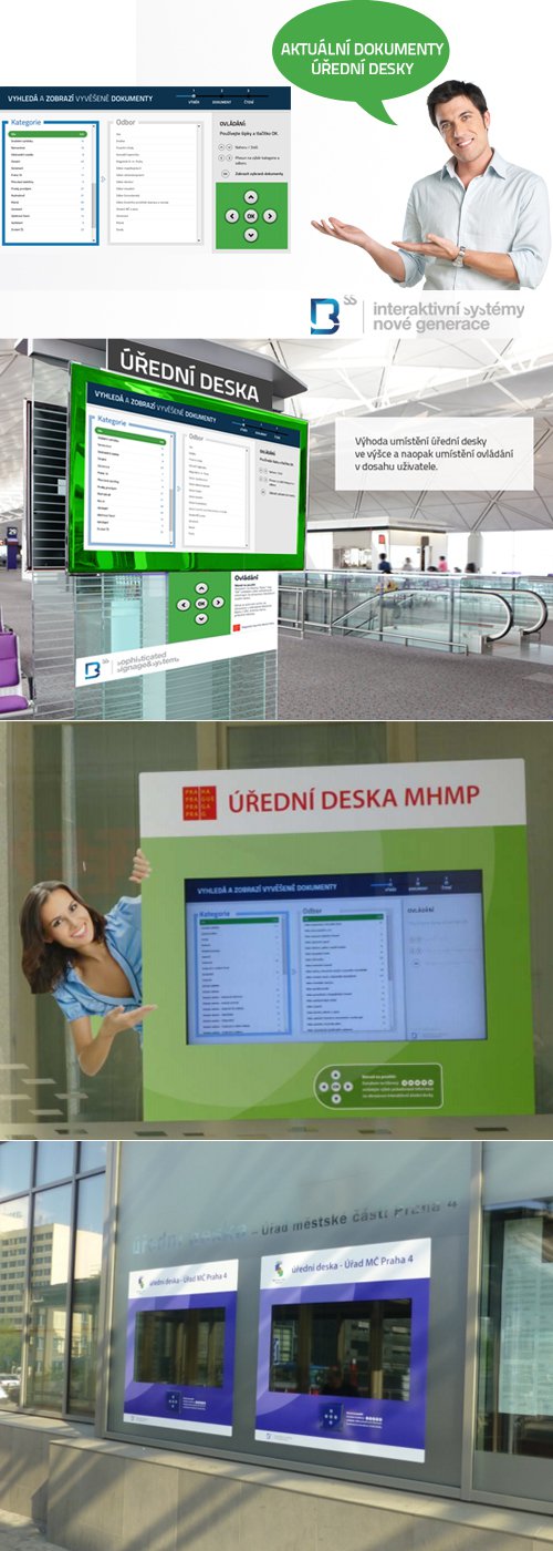 Často neaktuální, nepřehledné vývěsky na městských úřadech a institucích trpící nedostatkem prostoru pro zobrazení všech dokumentů, náročné na každodenní ruční aktualizaci, nahrazujeme elektronickými úředními deskami.